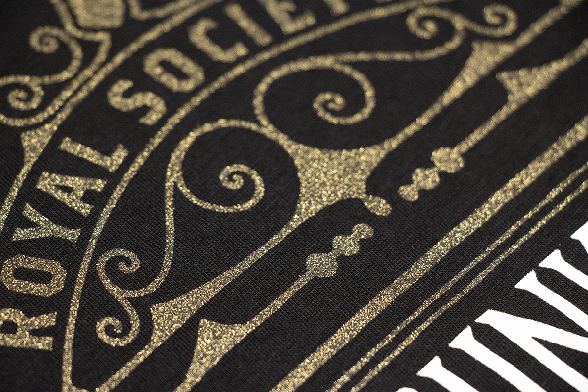Druck: Glittereffekt (gold), weiß (Text “Debunking”)