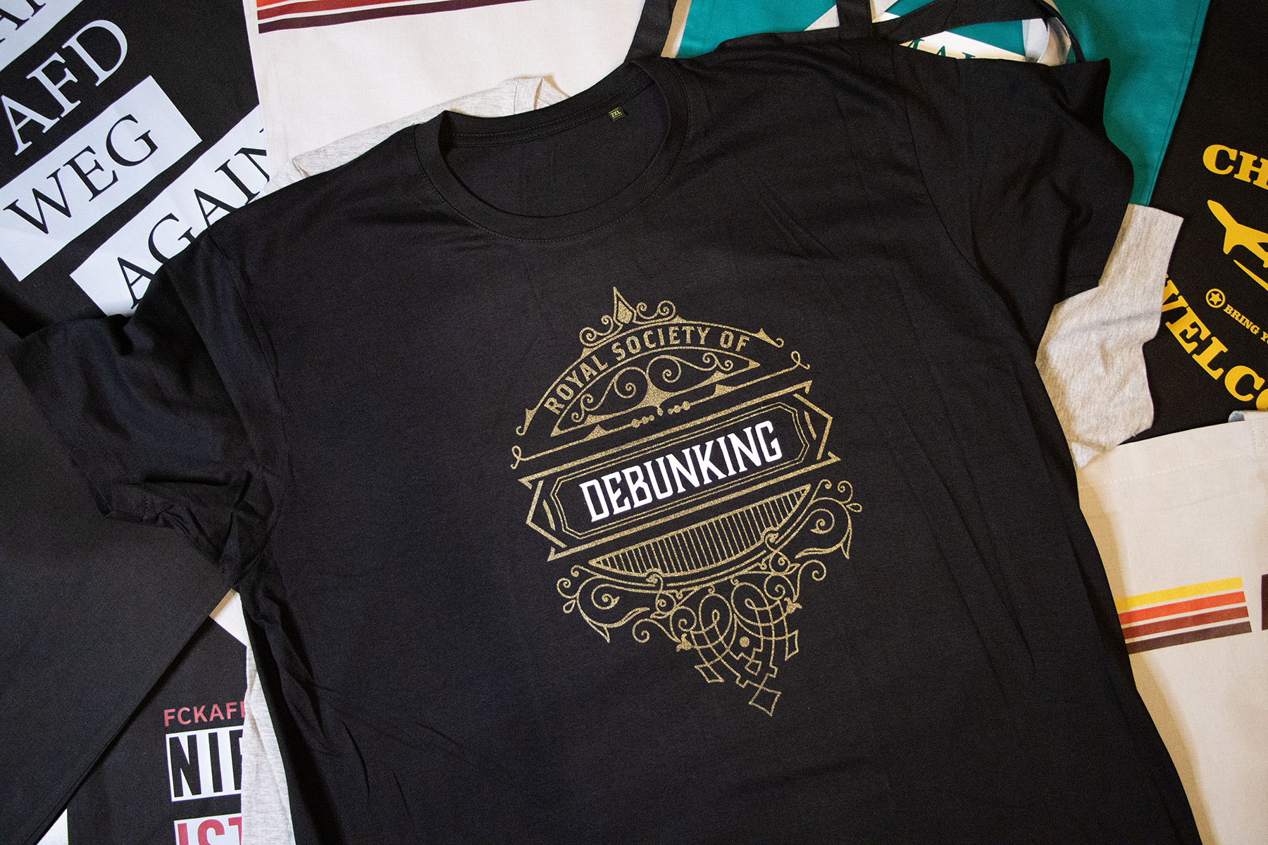 Anfang des 18. Jahrhunderts traf sich Isaac Newton regelmäßig mit anderen Fellows der britischen Gelehrtengesellschaft, der Royal Society, im Grecian Coffee House in London, um über Wissenschaft zu diskutieren. Folgt dieser Tradition und zeigt mit diesem Shirt, dass ihr Fake News und Narrative debunkt (to debunk, engl.: entlarven), und Tatsachen auf den Grund geht. Zeigt stolz eure Mitgliedschaft im erleuchteten Gelehrtenkreis derer, die Unsinn widerlegen.