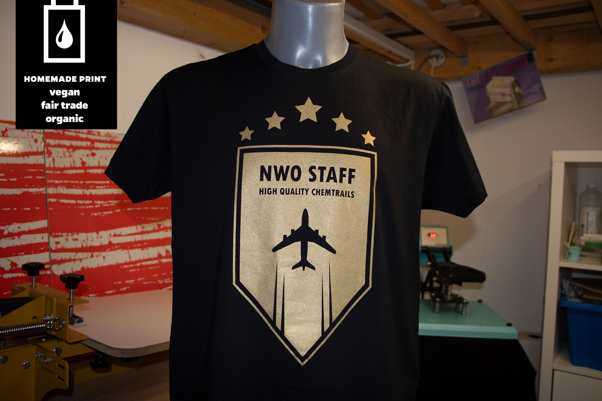 Alle unsere Textilien werden von uns selbst in Handarbeit bedruckt. Der Erlös vom Verkauf dieses T-Shirts fließt in unsere gemeinnützige Arbeit. So können wir z.B. kostenlos Broschüren abgeben, Beratung anbieten oder auch mal unentgeltlich einen Workshop durchführen.